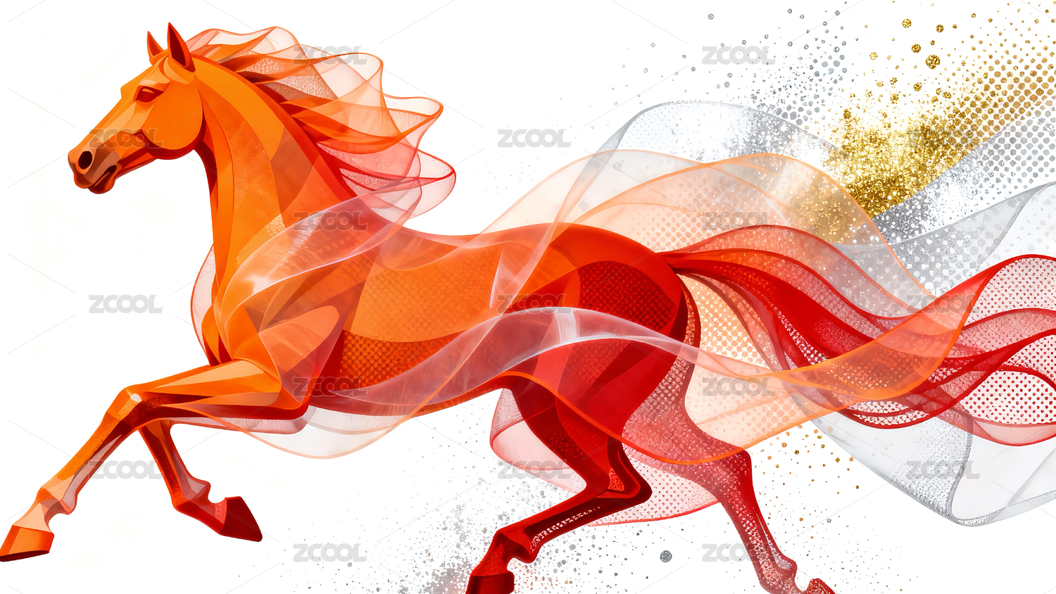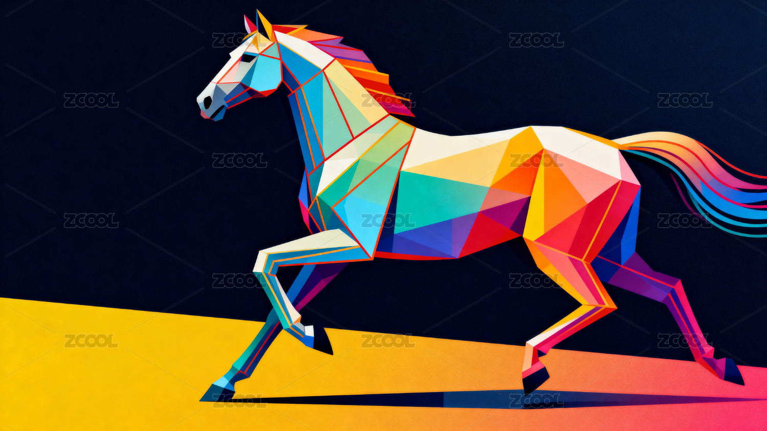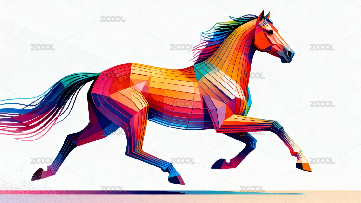 抽象几何风格的奔跑骏马