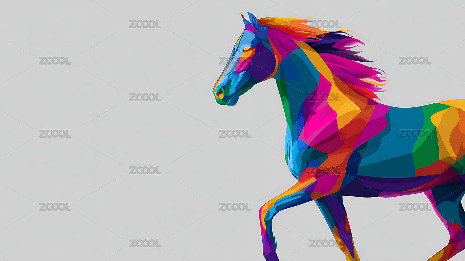 几何骏马炫彩插画设计场景