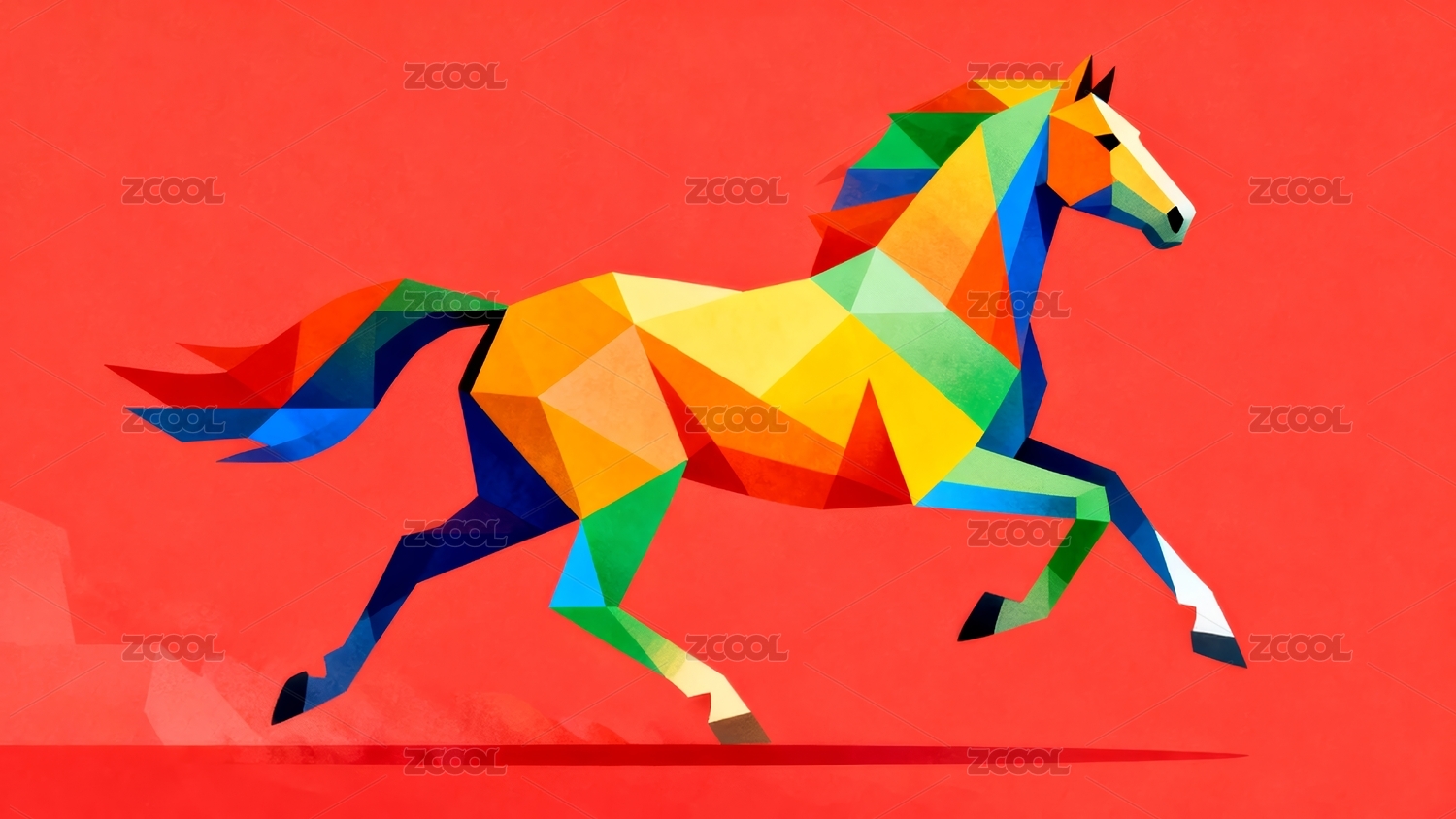 抽象多边形彩色奔跑的马