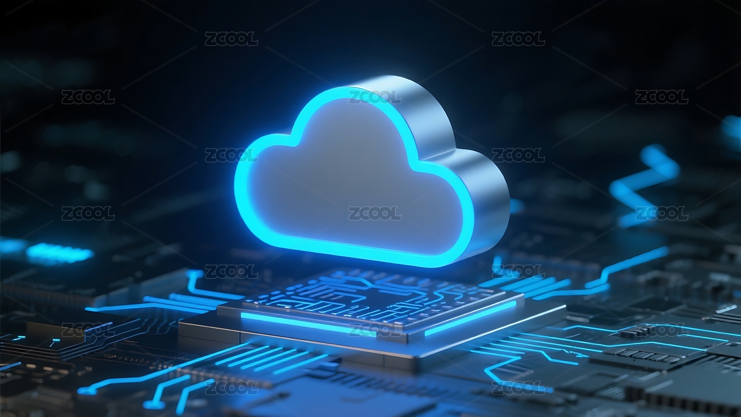 发光云朵与电路板科技场景