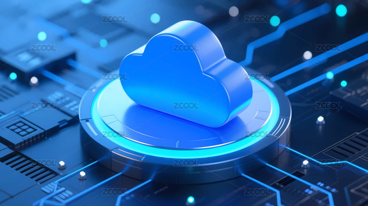 科技,未来,蓝色,深蓝,光点,圆形,云朵,电路,平台,图标