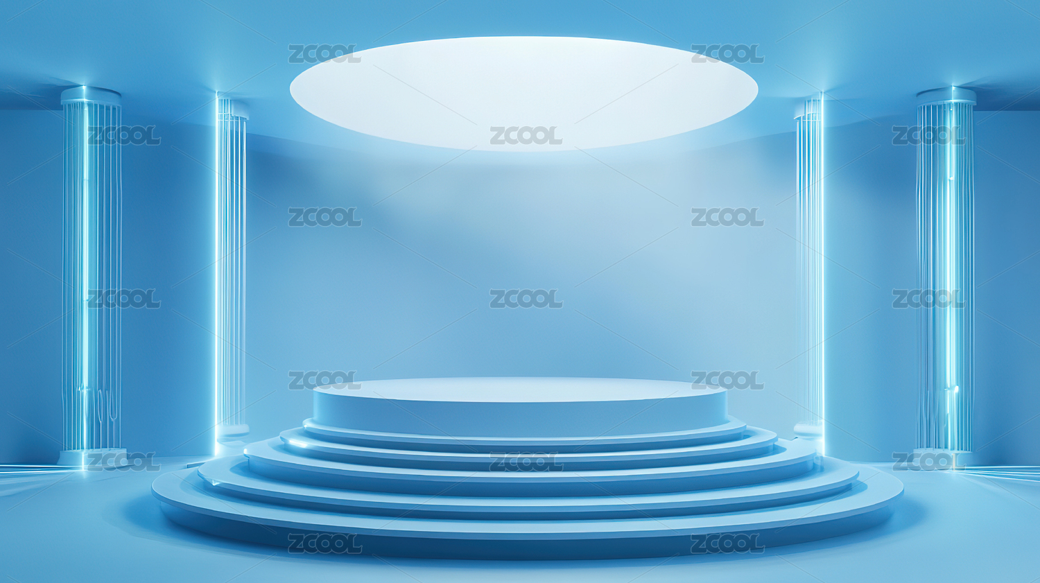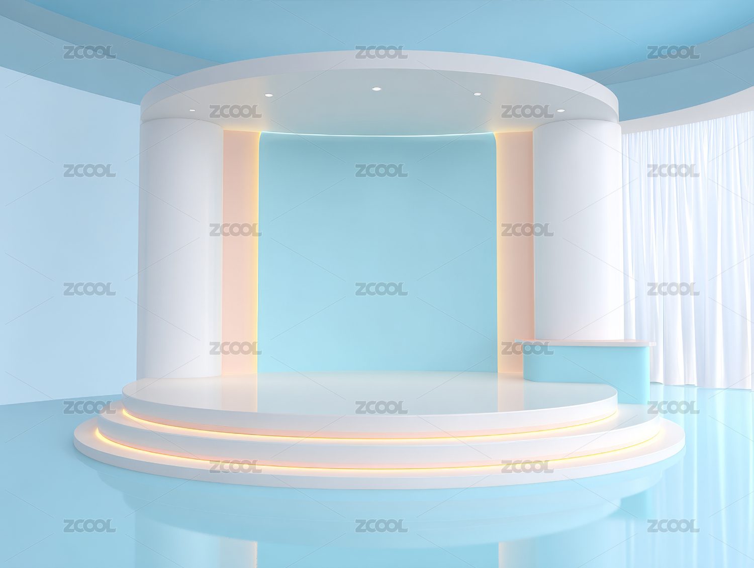 圆形,平台,白色,宁静,柔和,浅蓝,米色,柱子,天窗,墙面