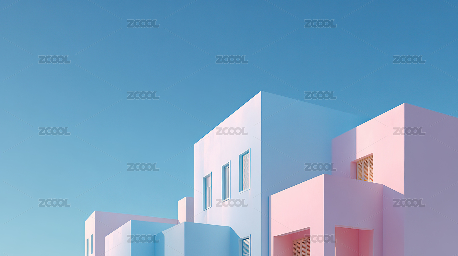 彩色建筑立面与蓝天背景