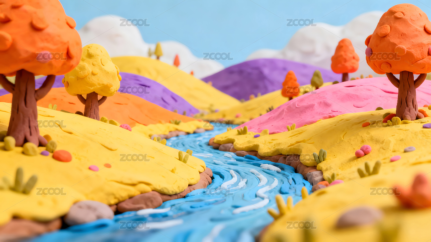 黏土制作的童话风景色彩鲜艳梦幻