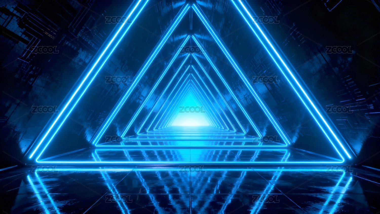 蓝色科技三角隧道光影效果
