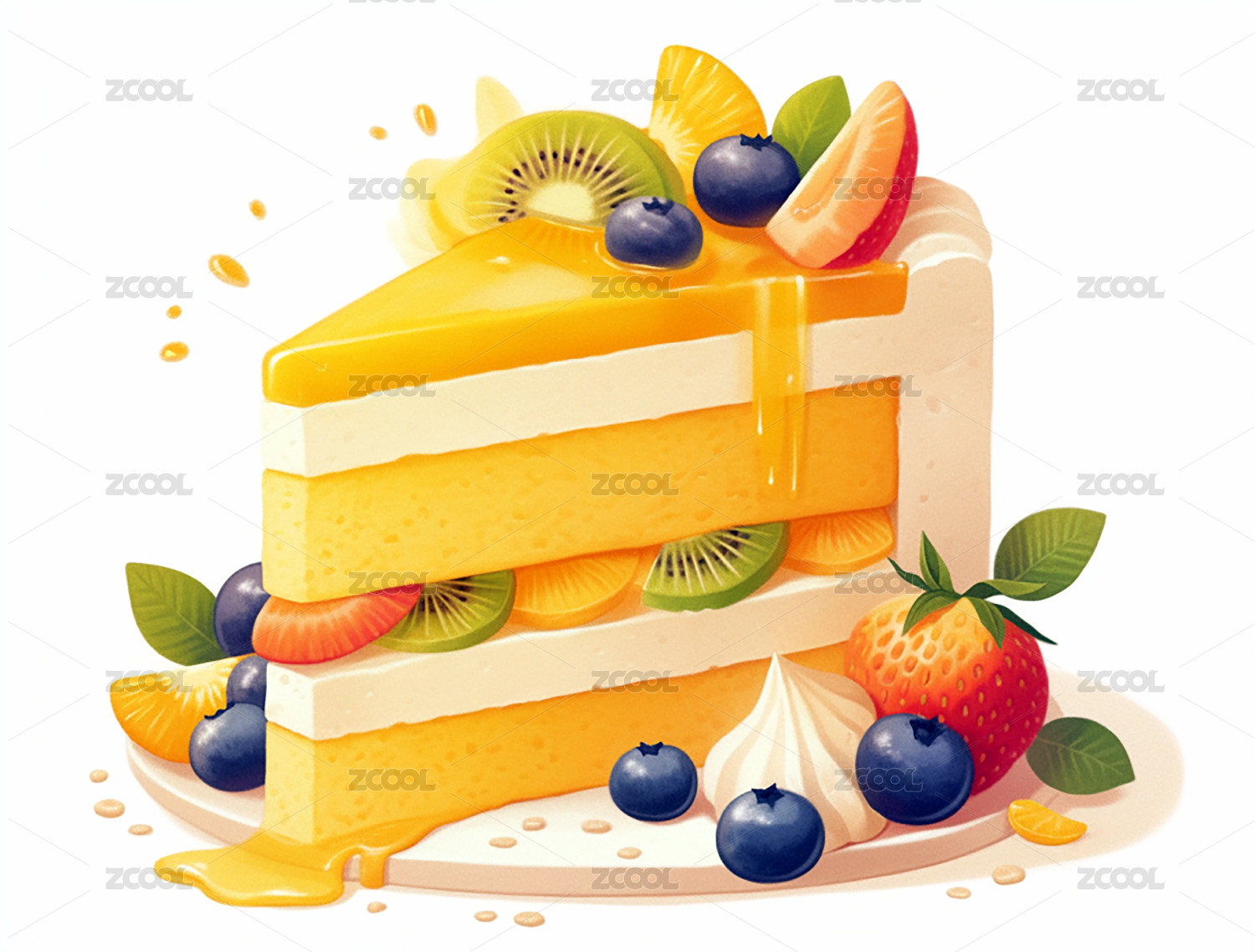 浆果蛋糕甜品下午茶果酱蛋糕水彩手绘