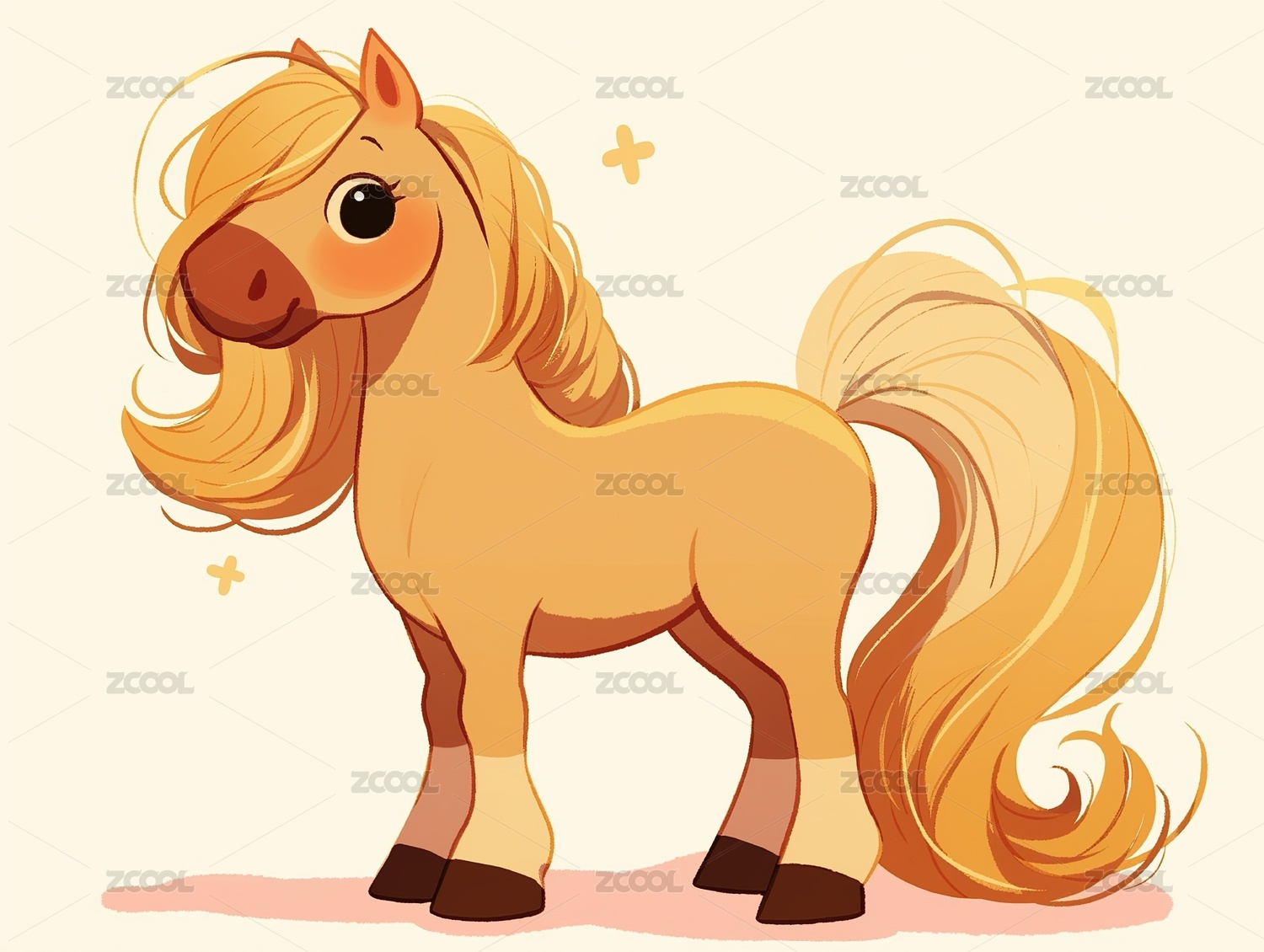 卡通长尾巴小马驹看图识物动物卡片教育插画