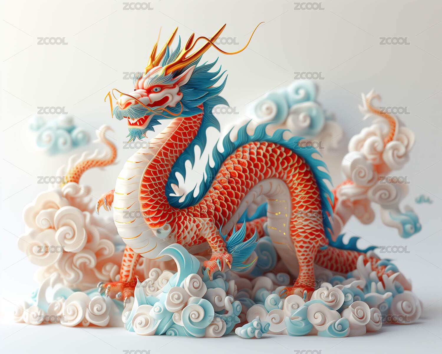 三维,3D,龙,神龙,新年,祥云,春节,元宵节,中秋节
