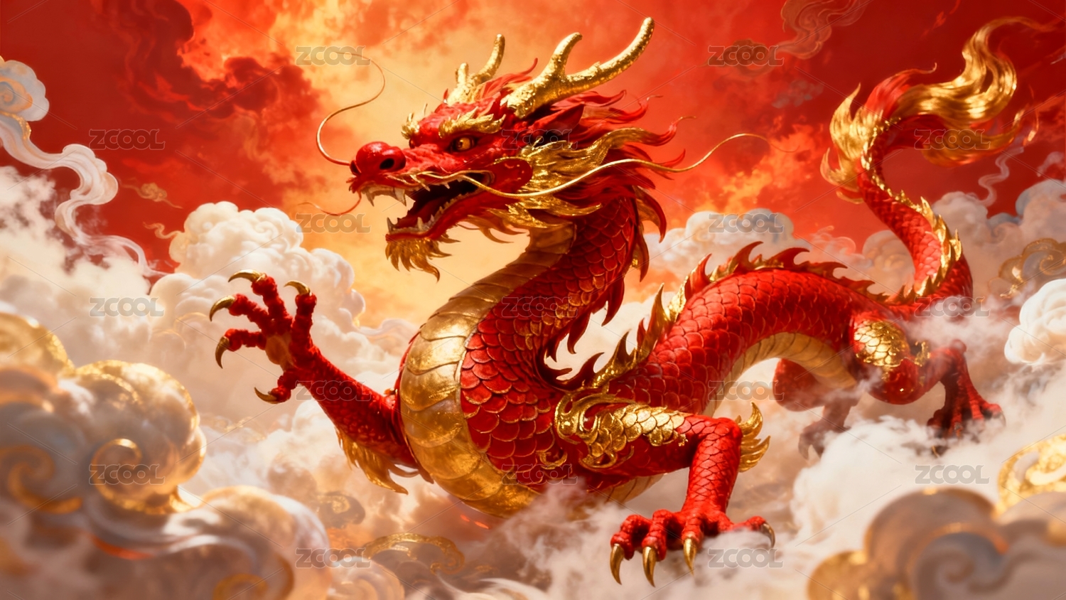 三维,3D,龙,神龙,新年,祥云,春节,元宵节,中秋节,龙年