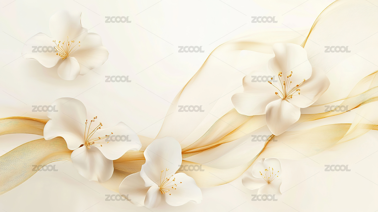 梦幻花朵与流动线条的艺术组合