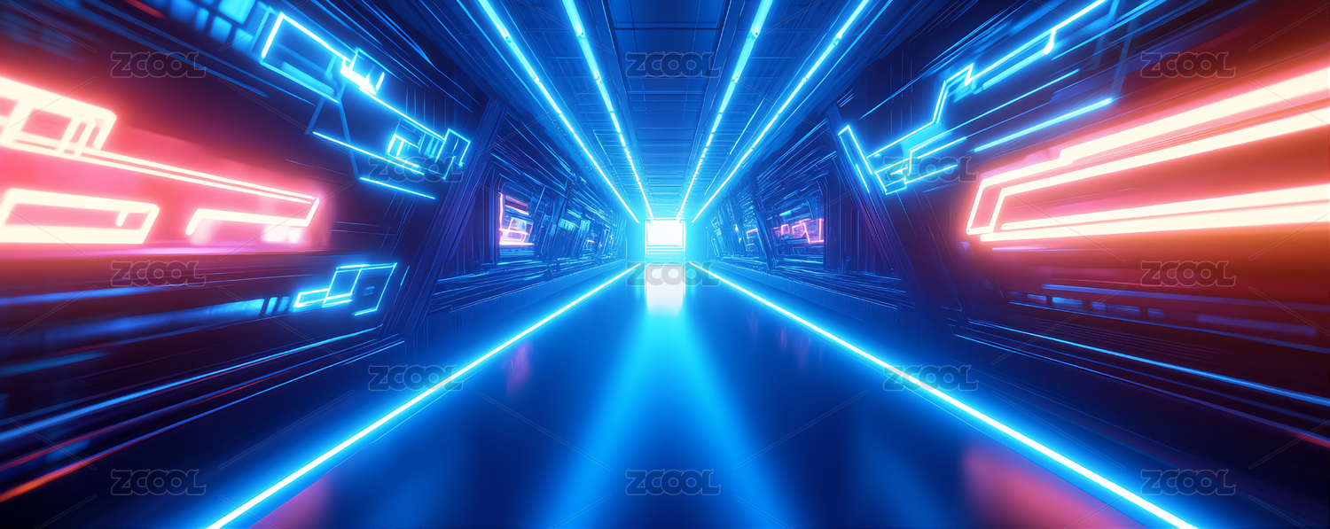霓虹灯隧道的未来科技场景