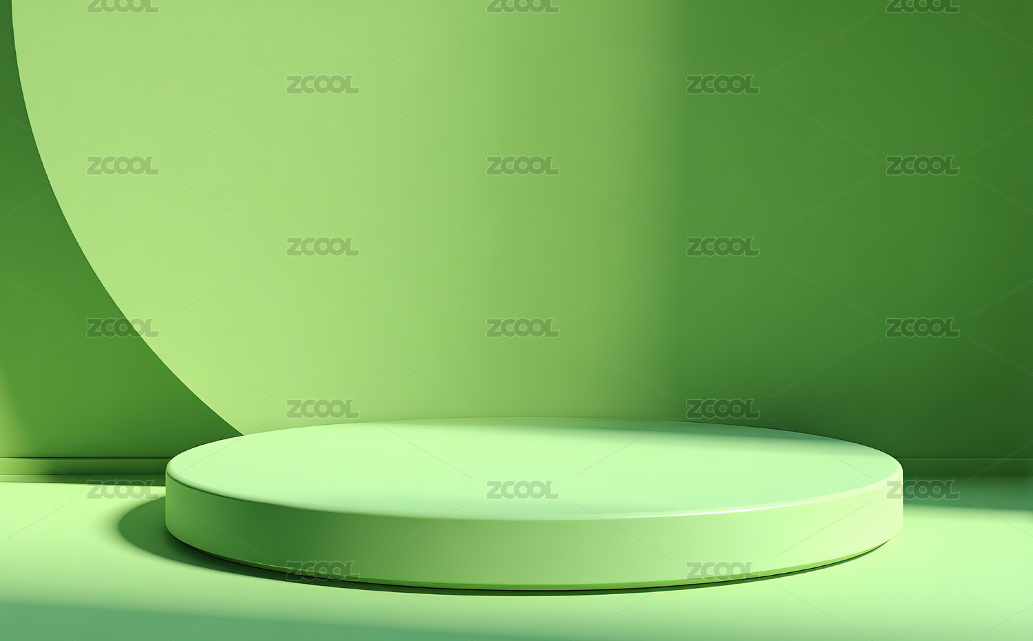 绿色圆形展台与弧形背景