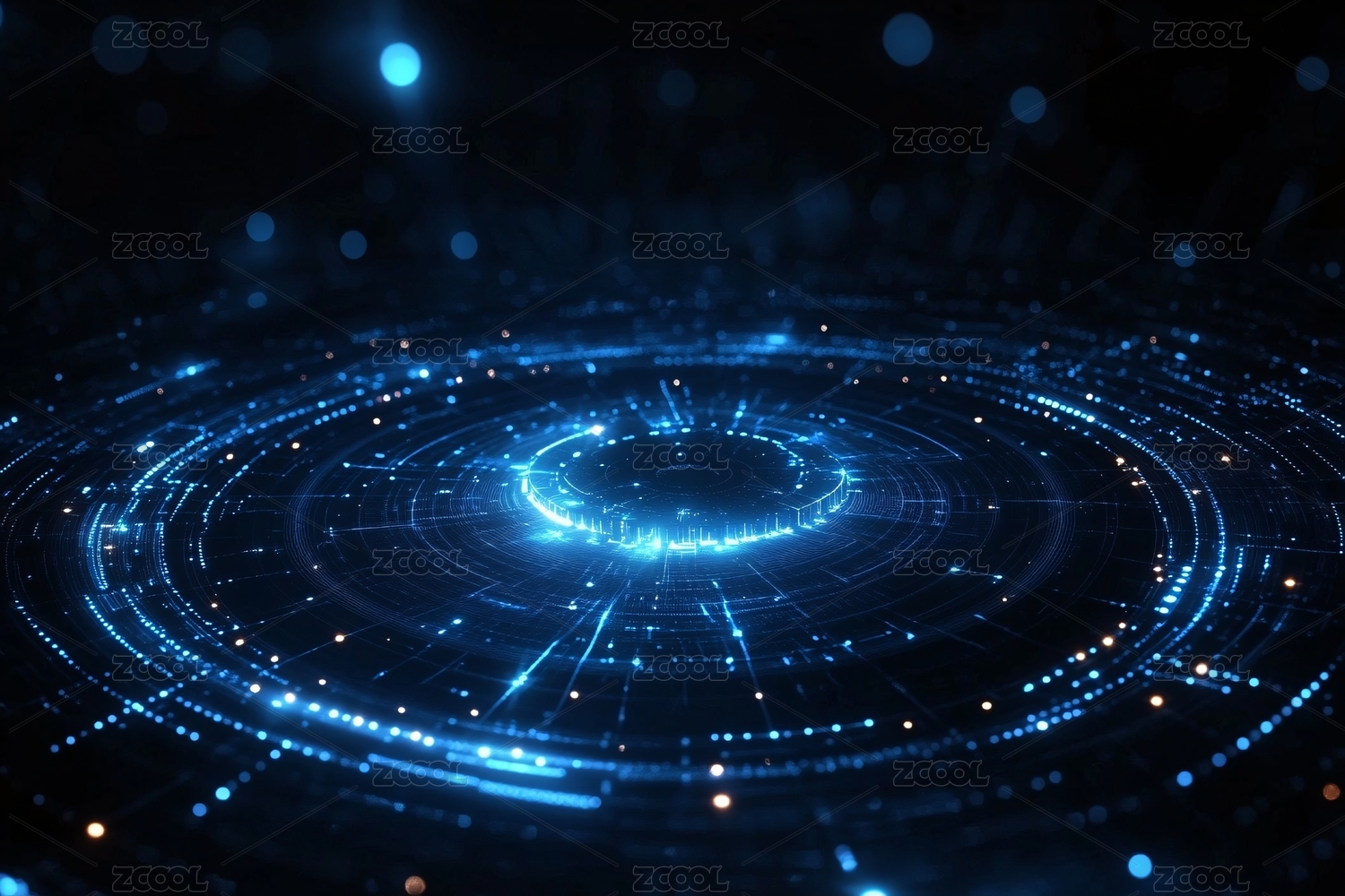 科技感蓝色光环与点状元素图案