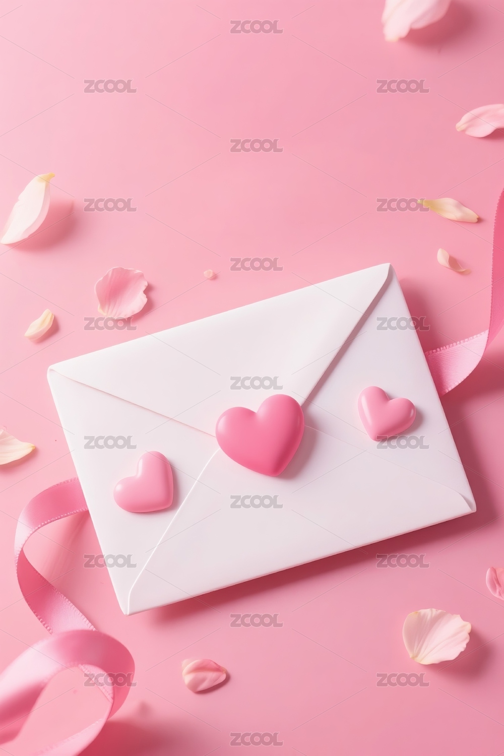 粉色信封与爱心漂浮背景