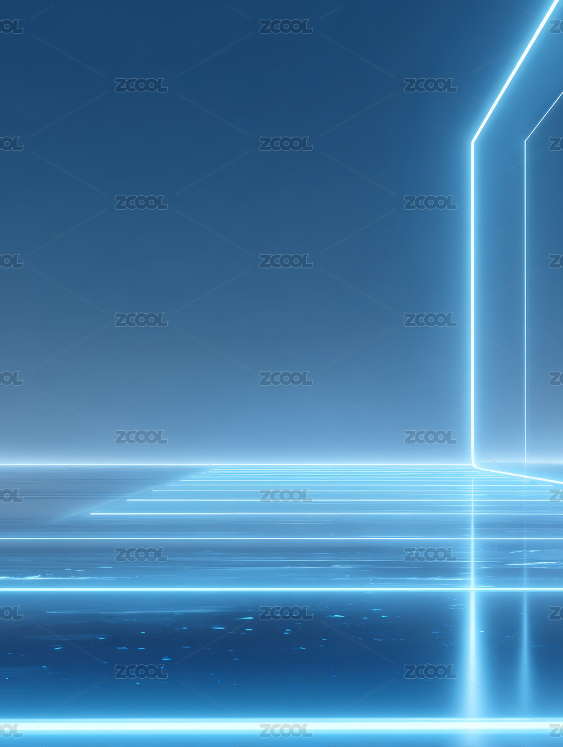 蓝色光带延伸的科技空间