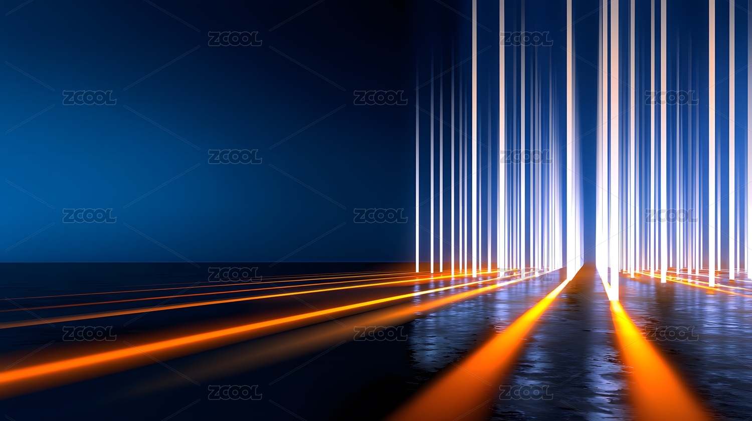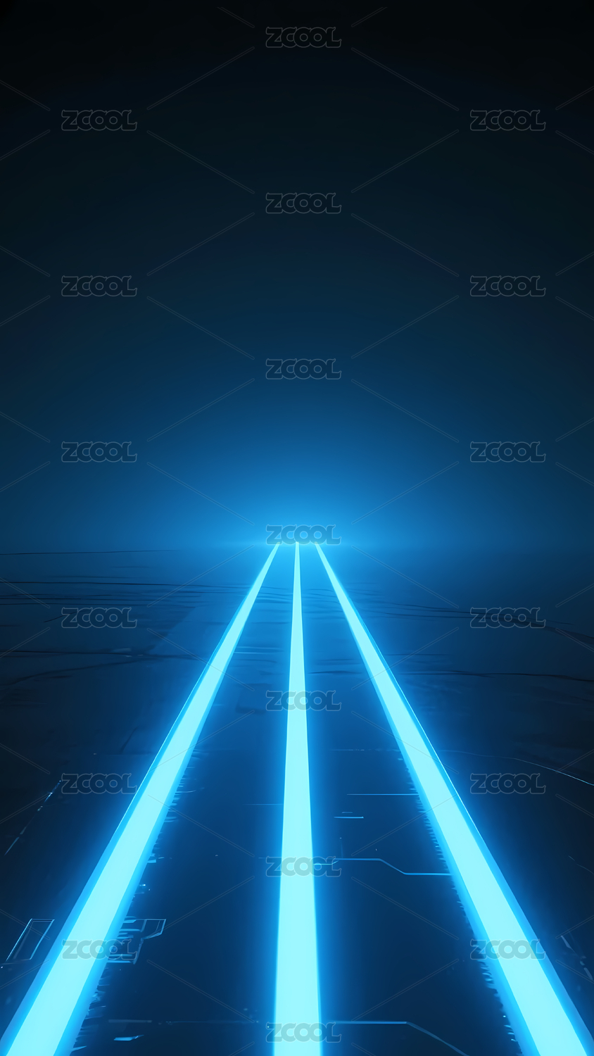 蓝色光束延伸至远方的抽象画面