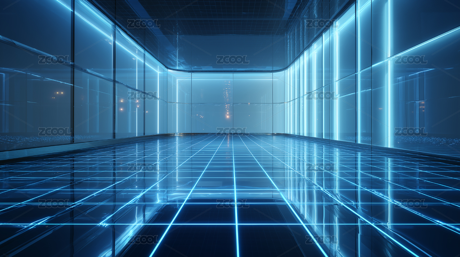 赛博极简光栅走廊