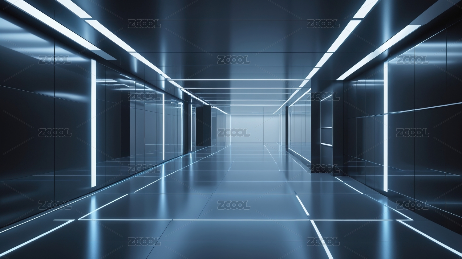 未来科技感对称走廊空间