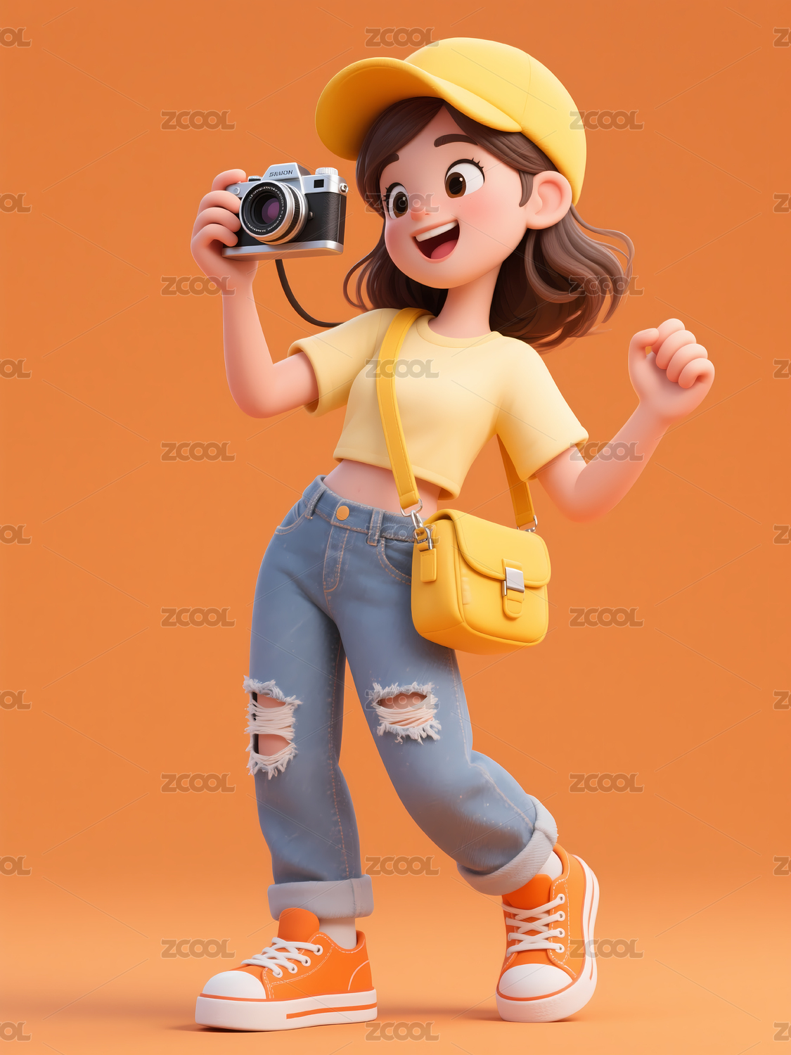 黄色,背景,明亮,橙色,动态,女孩,人物,卡通,休闲,青春