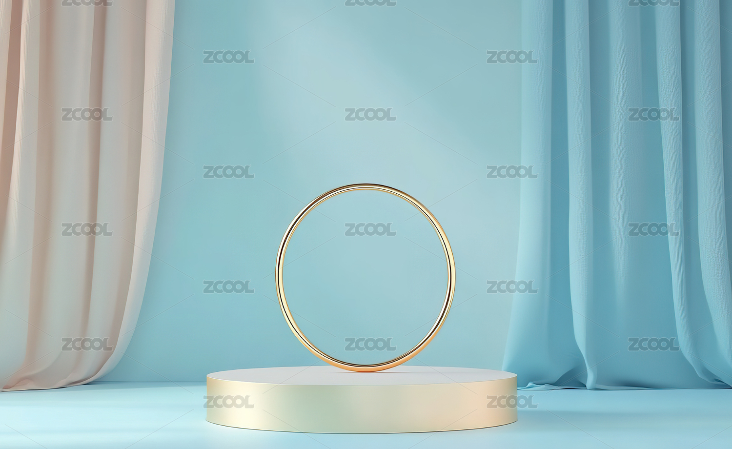 金色圆环置于绿色帷幕前