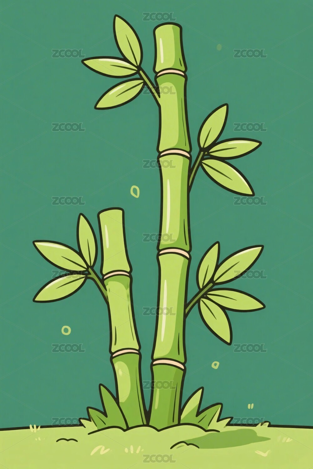 竹子,叶子,插画,绿色,卡通,简笔画,装饰,植物,自然,清新