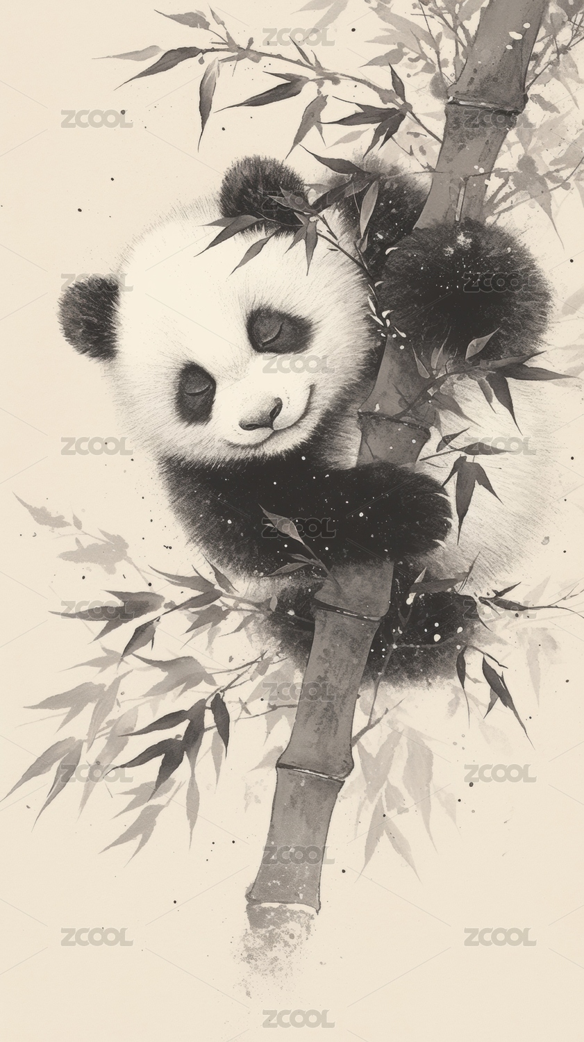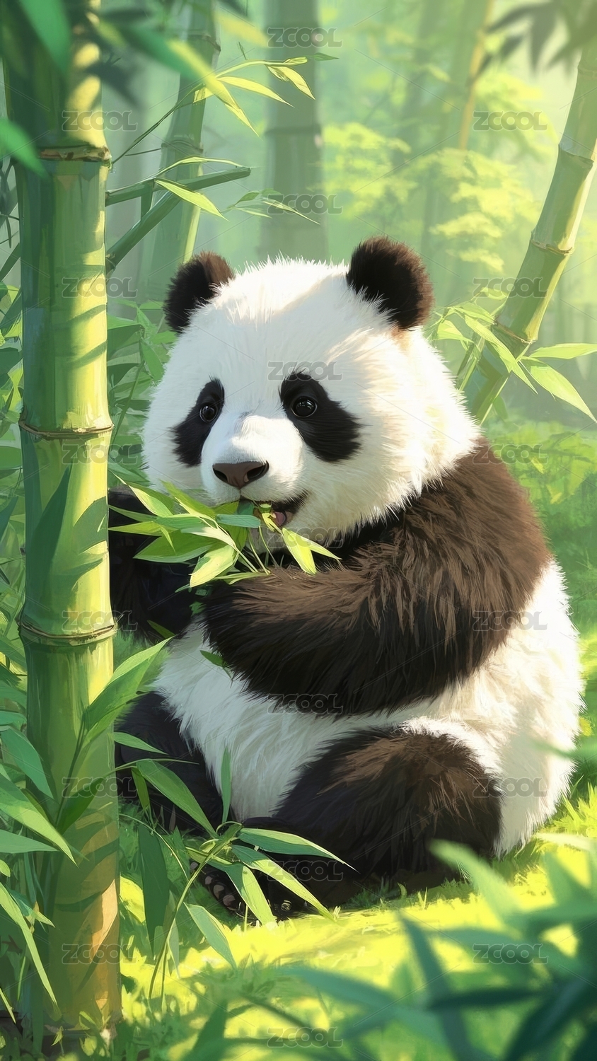熊猫,竹子,竹枝,插画,动物,自然,森林,树叶,卡通,可爱