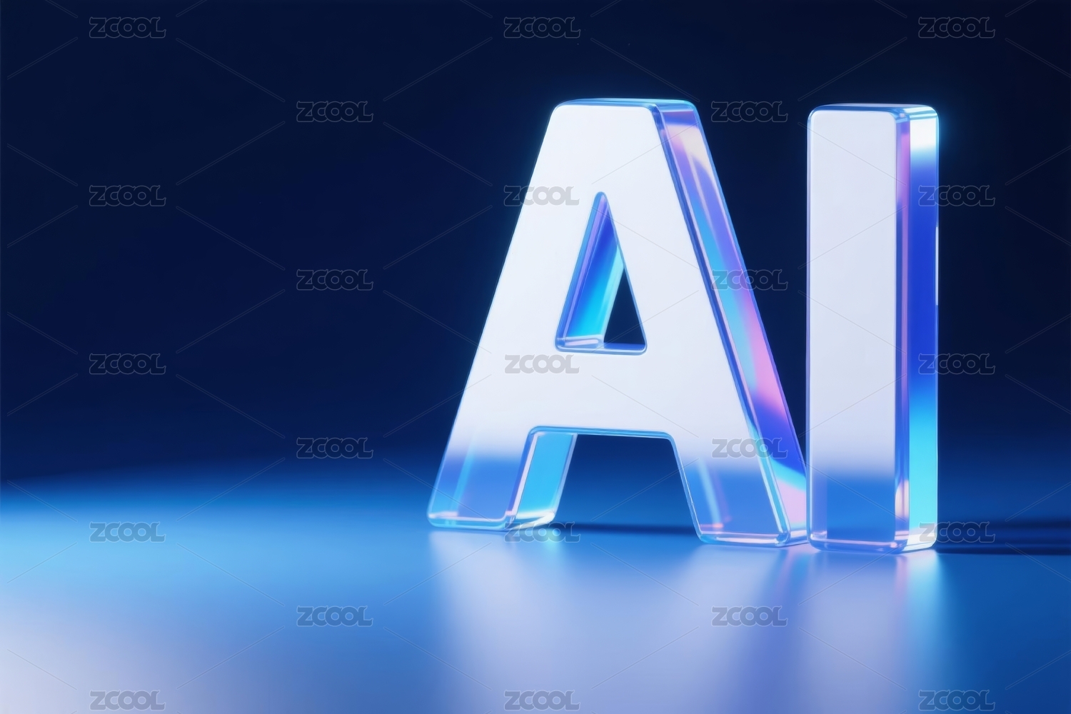 蓝色背景下的立体AI字样