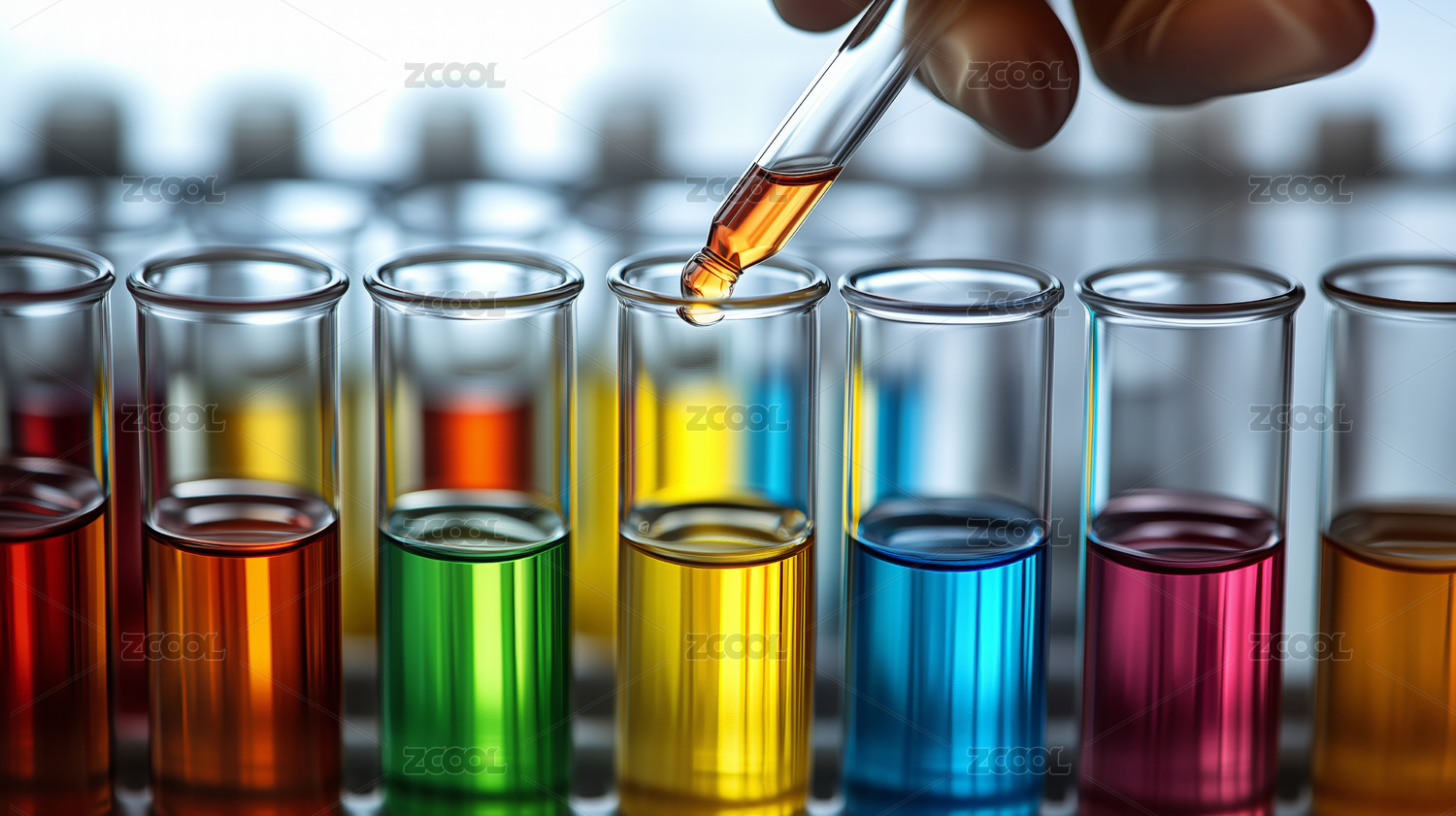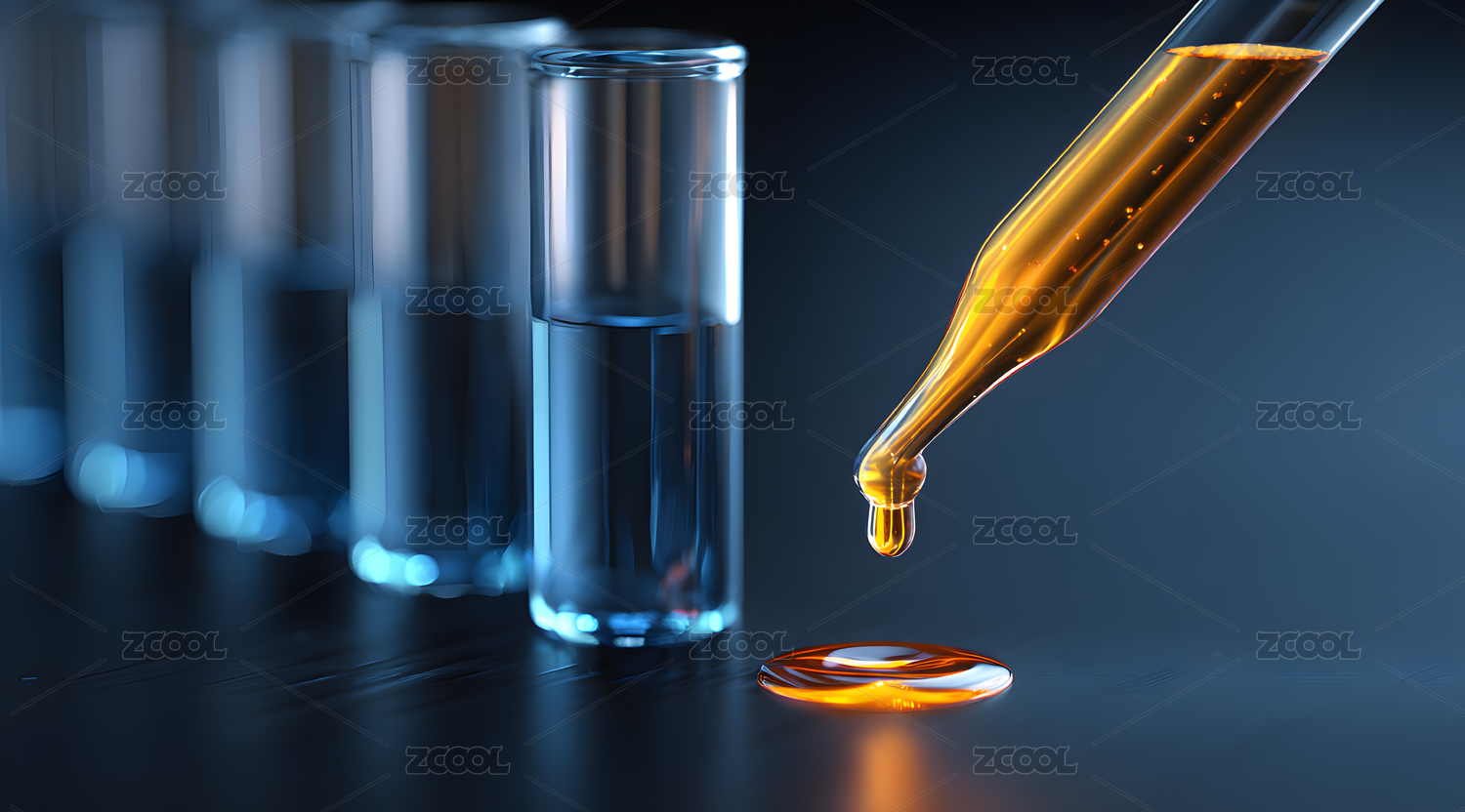 滴管注入透明容器中的橙色液体
