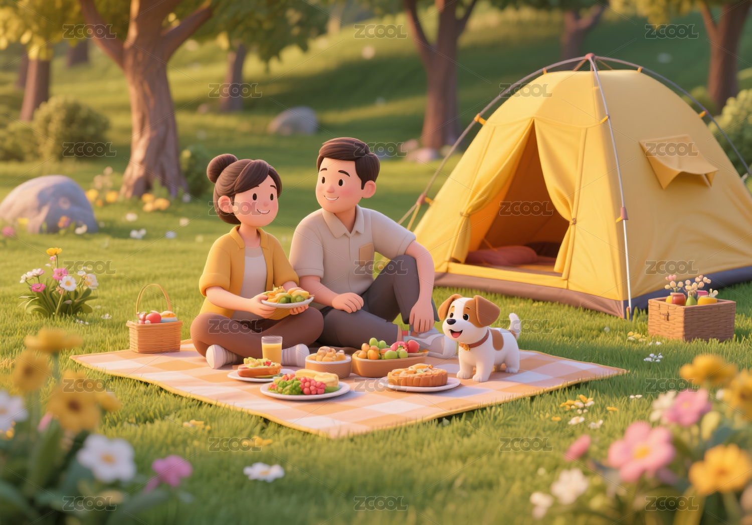 公园,野餐,家庭,草地,篮子,野餐垫,父母,孩子,飞盘,午后