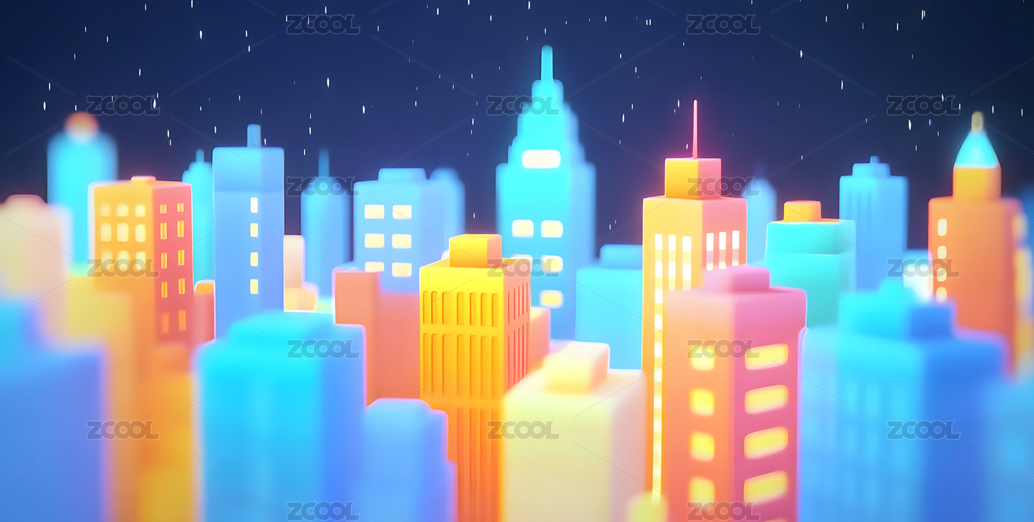 城市,天际线,建筑,灯光,夜空,霓虹,沙盘,粘土,模型,可爱