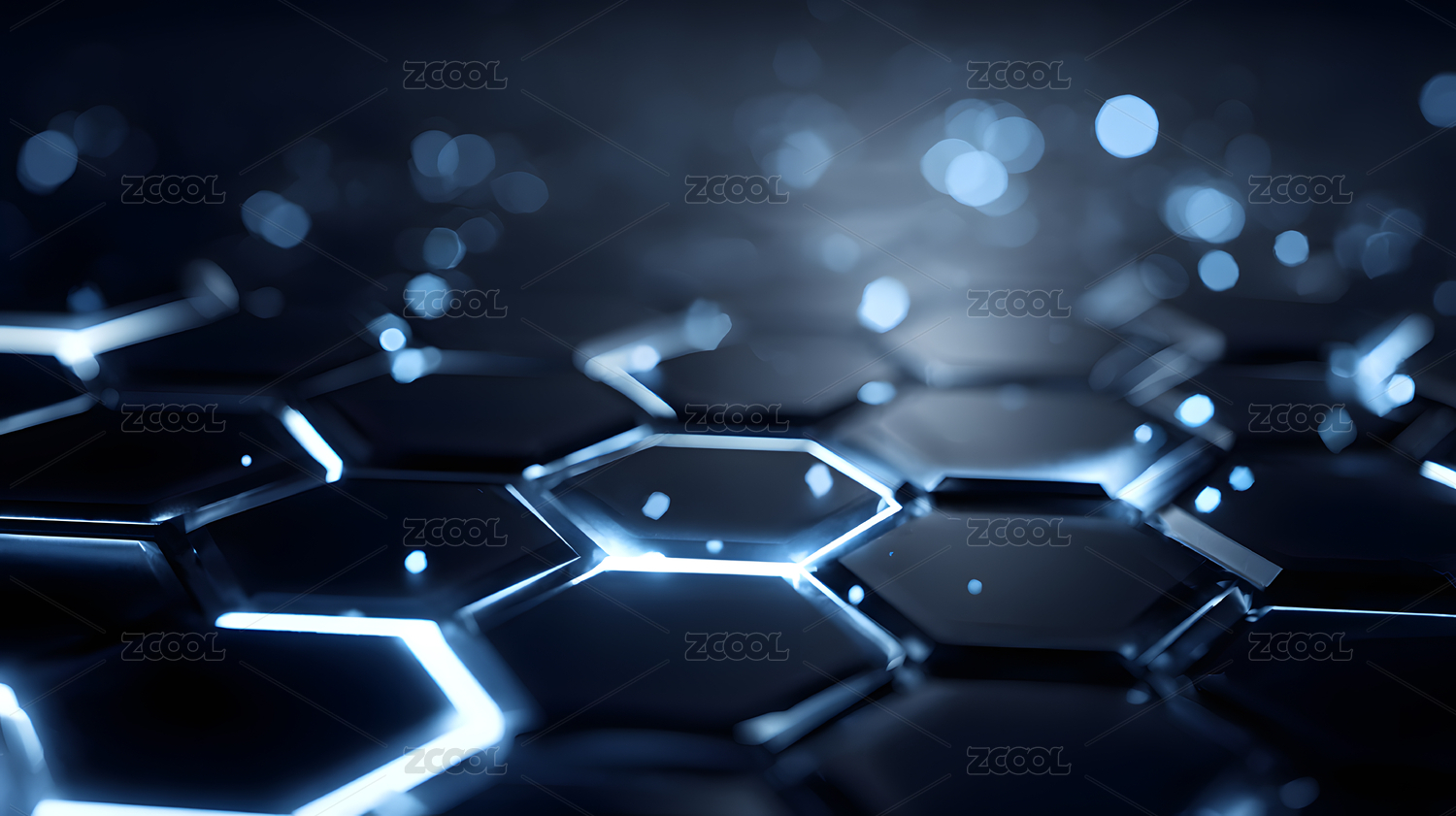 蓝色发光的六边形网格背景