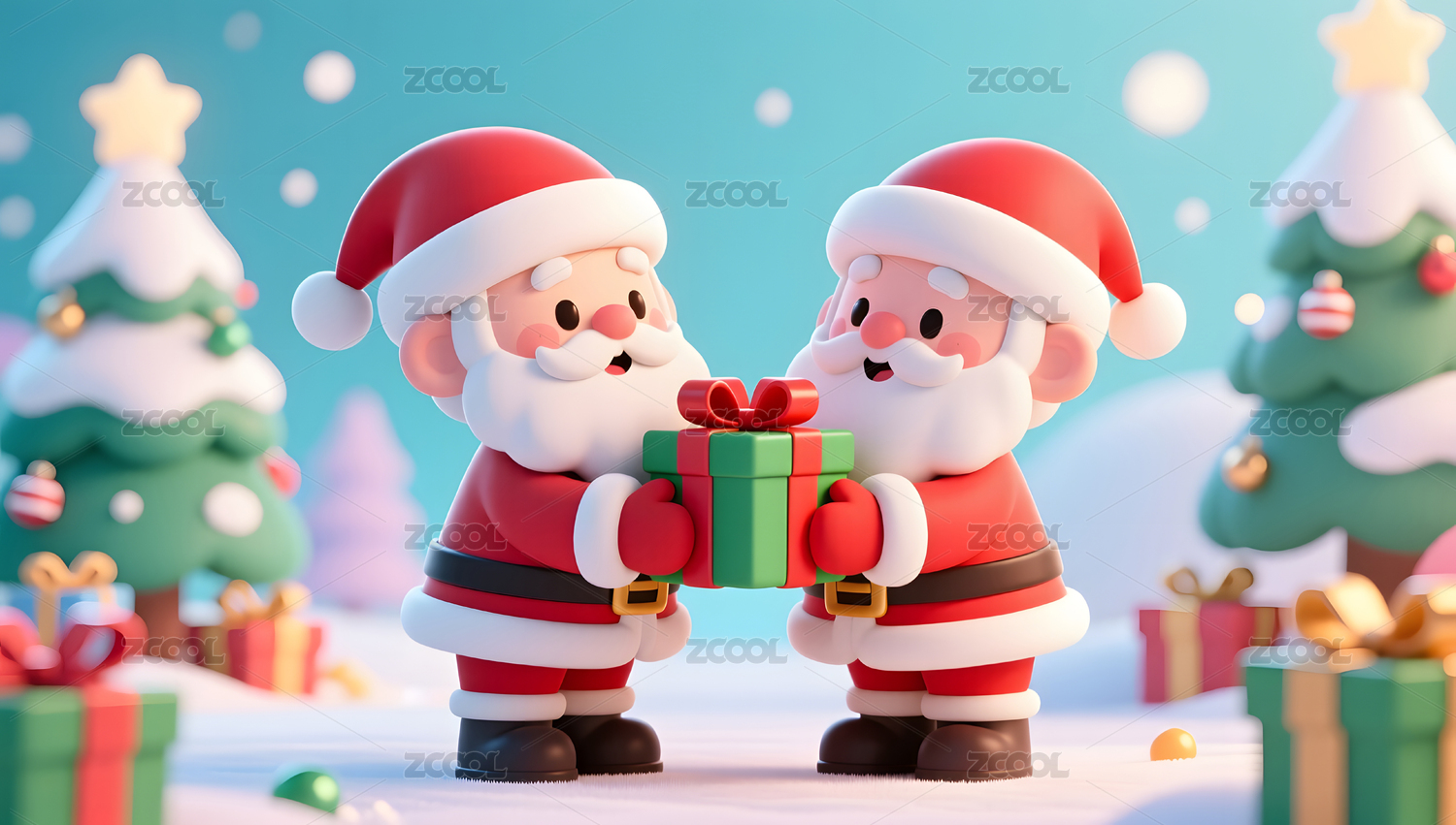 圣诞,圣诞老人,礼物,Q版,卡通,可爱,儿童,梦幻,童话,场景