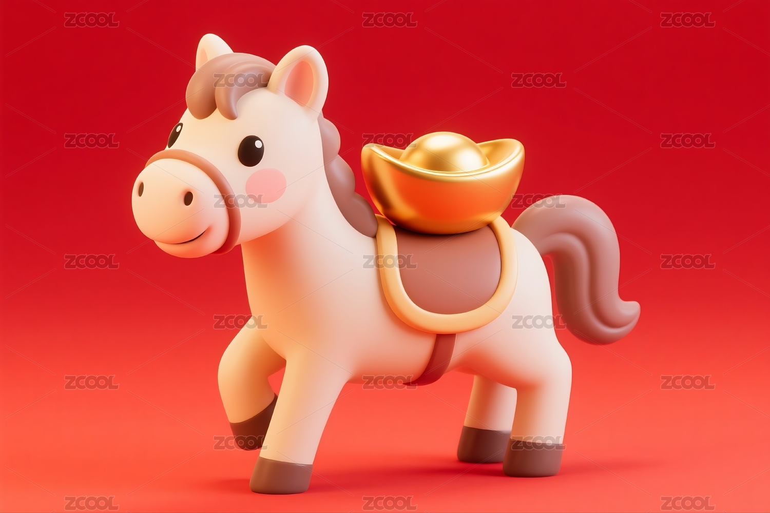 小马,公仔,红色,金色,元宝,铃铛,笑容,粘土,圆润,卡通