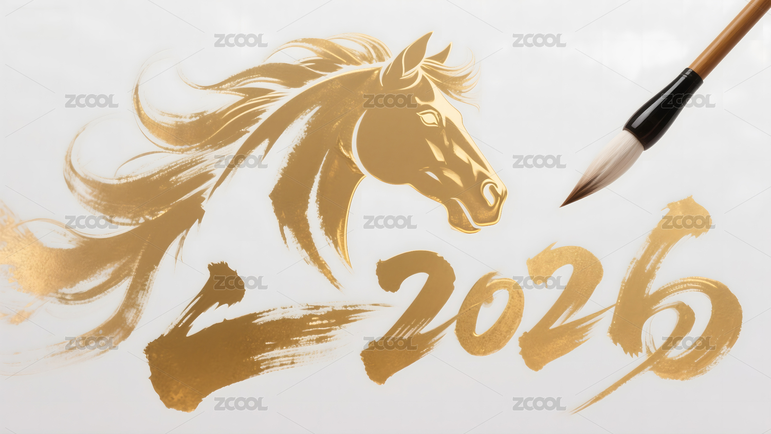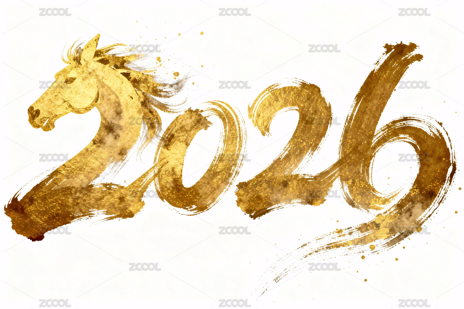 2026,新年,马,字体,艺术,红金,庆祝,节日,传统,喜庆