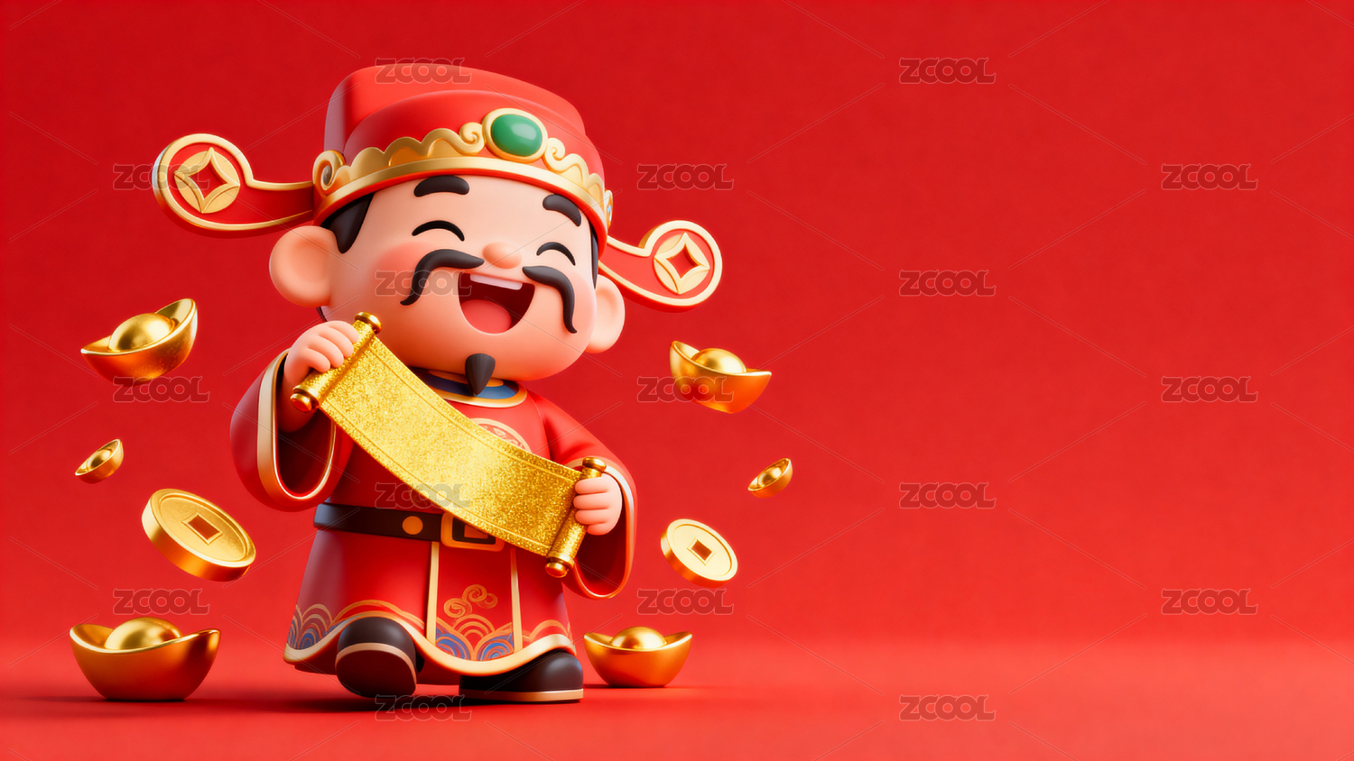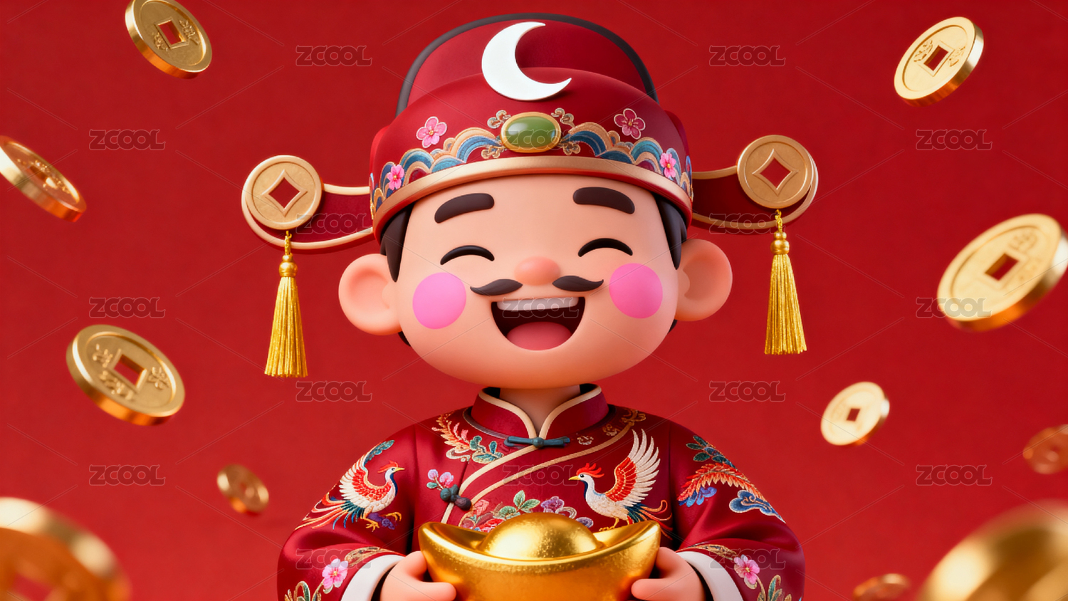 财神,可爱,中国风,角色,头部,眼睛,表情,官服,红色,金色