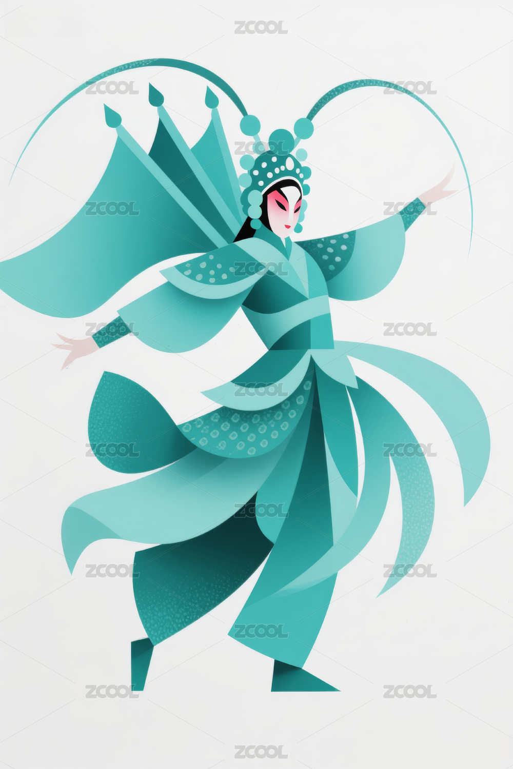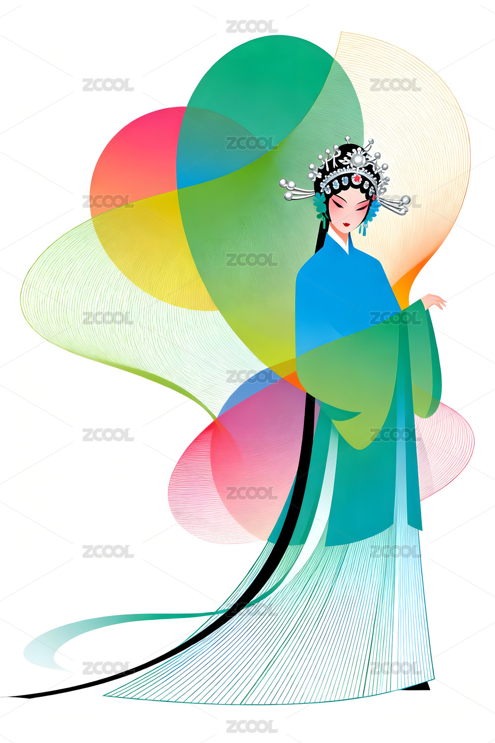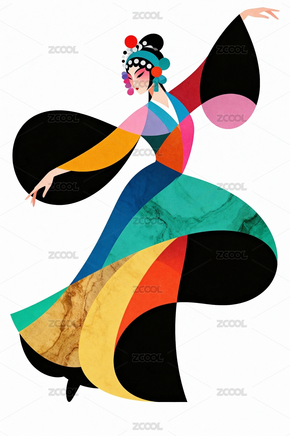艺术,插画,戏曲,女角,飘逸,服饰,风格,抽象,人物,动作
