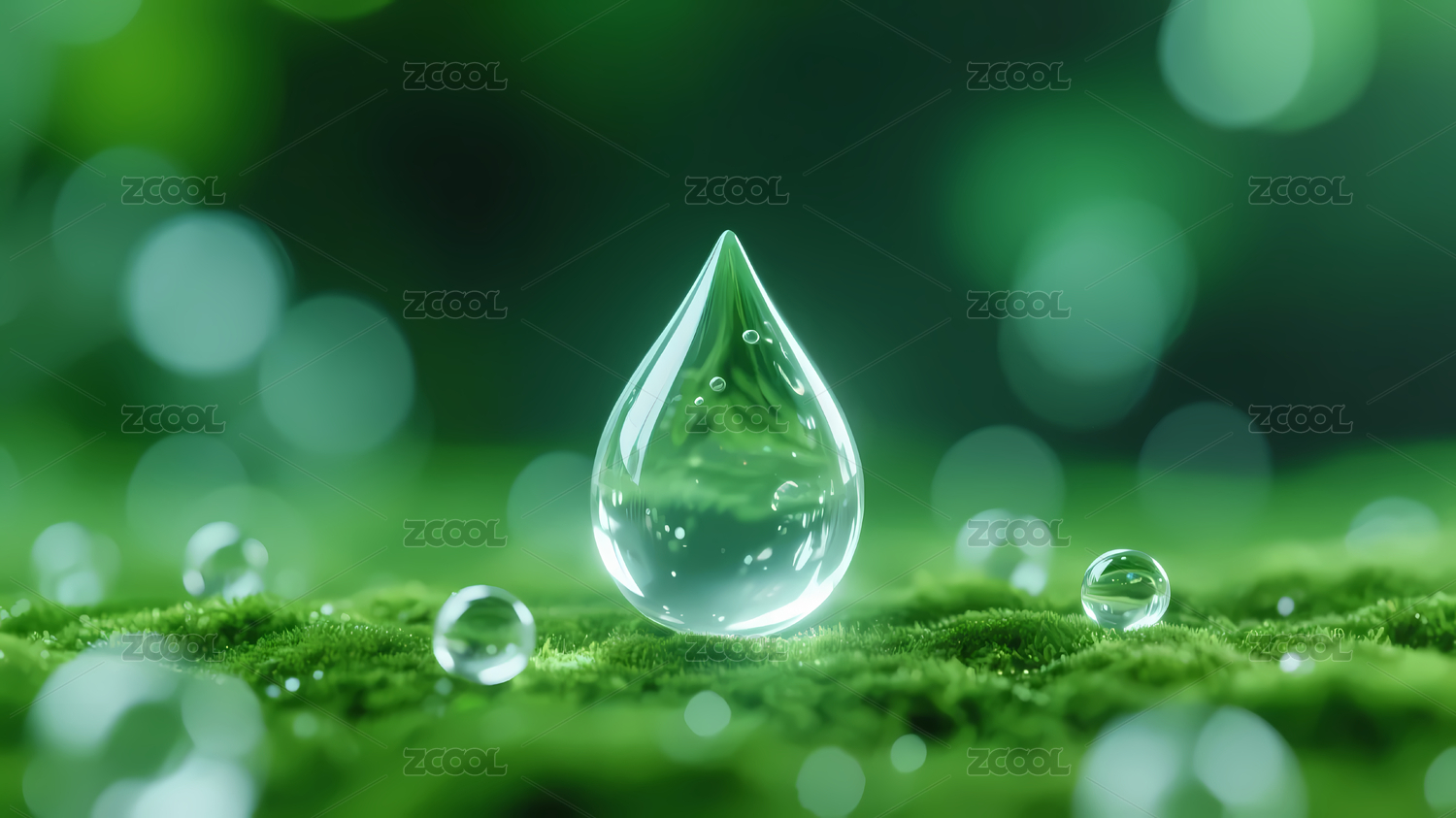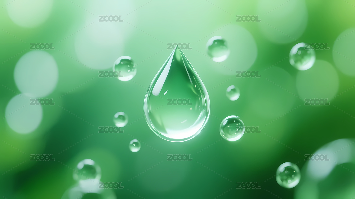 绿色渐变背景清晰水滴