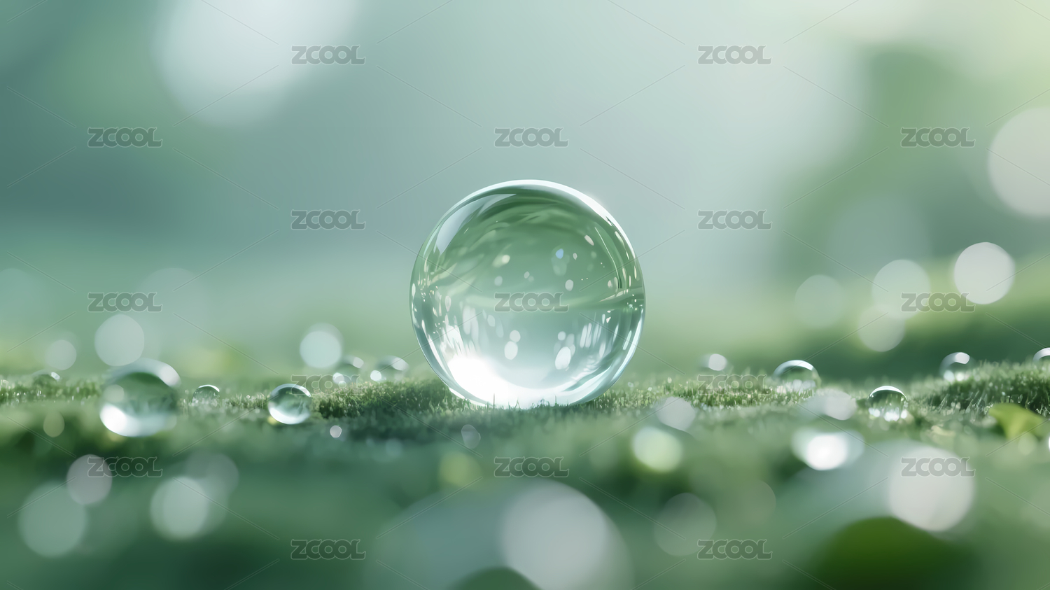 浅绿背景下透明水珠