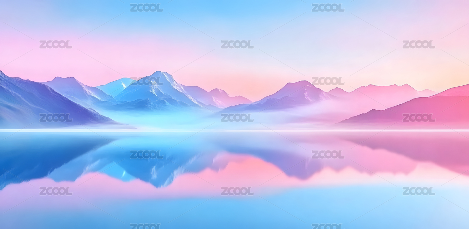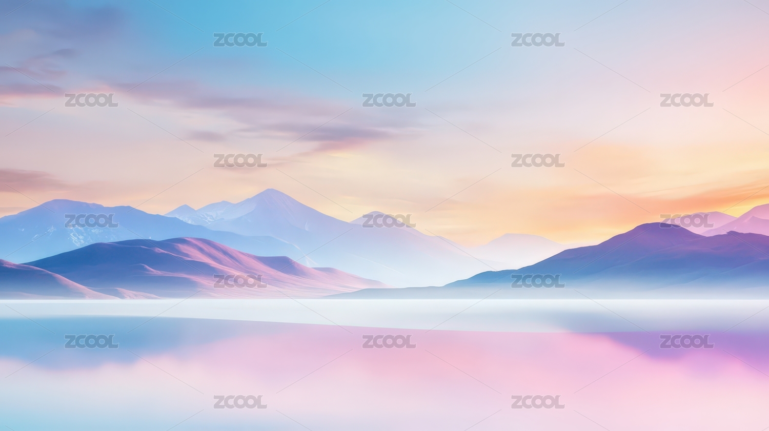 渐变天空,山峦,曲线,道路,倒影,柔和,宁静,梦幻,自然,风景