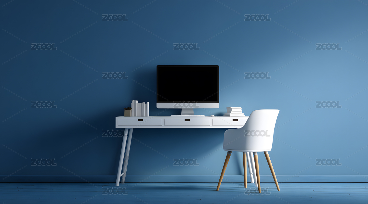 电脑,台灯,绿植,椅子,办公空间,简约,静谧,舒适,工作,学习