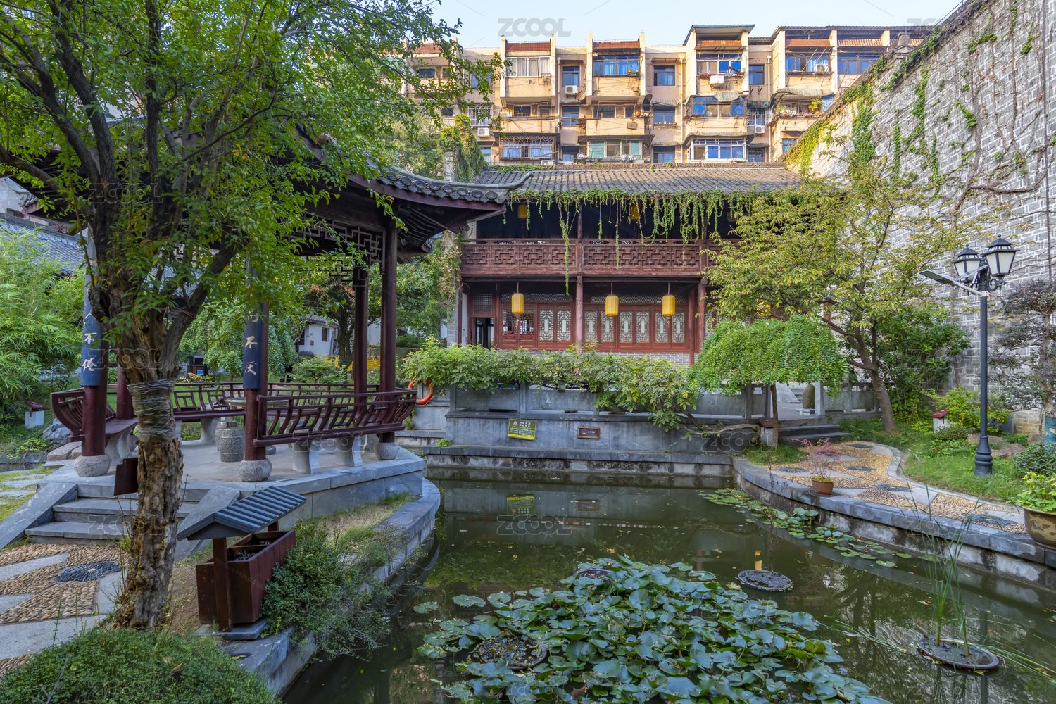 河南郑州紫荆山公园梦溪园江南水乡园林景观