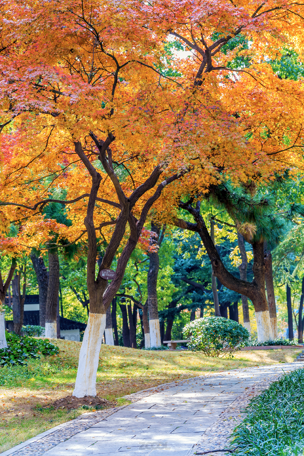 彩色树林小径,中国南京市莫愁湖公园秋色