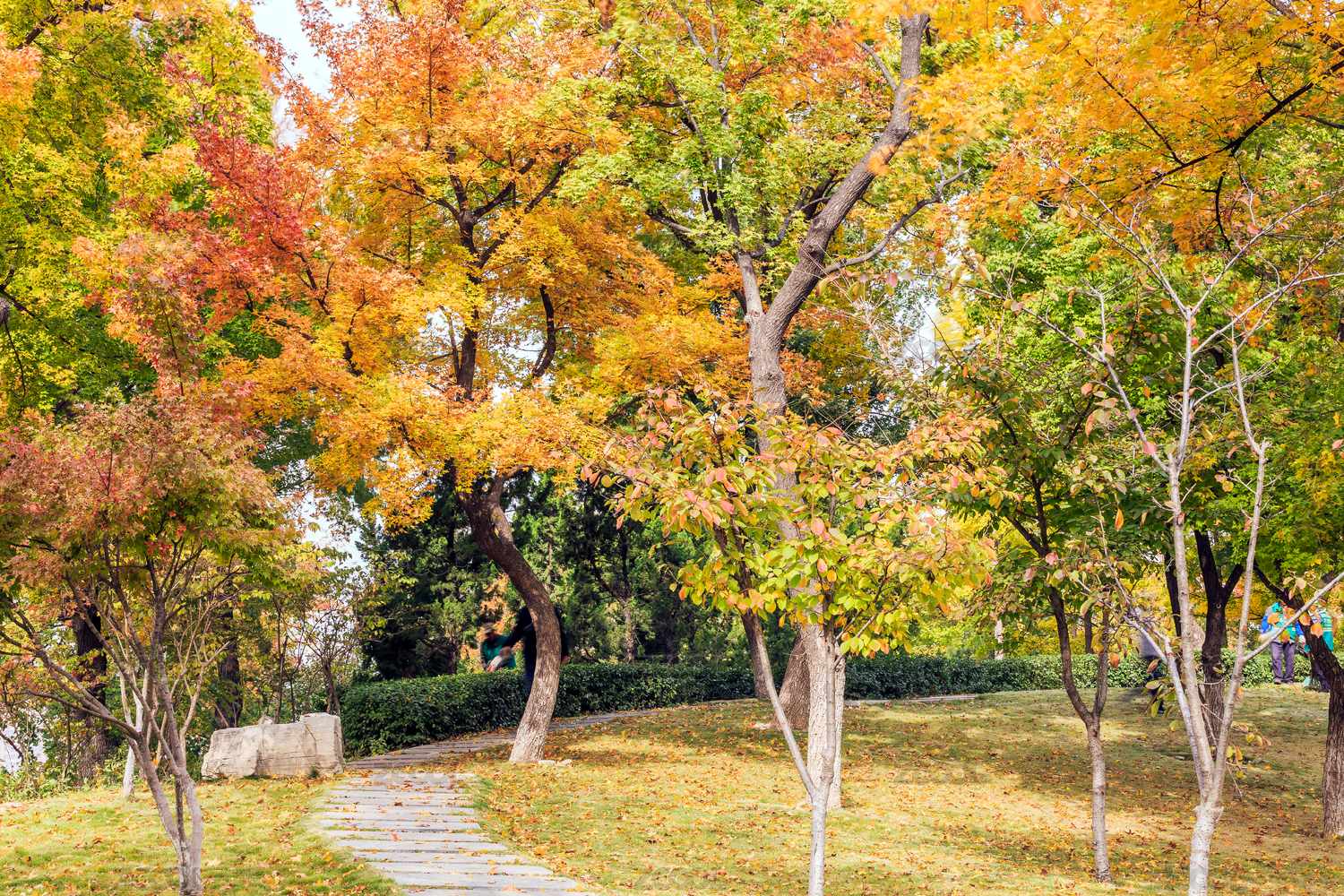 黄枫树林小径,中国南京市莫愁湖公园秋色