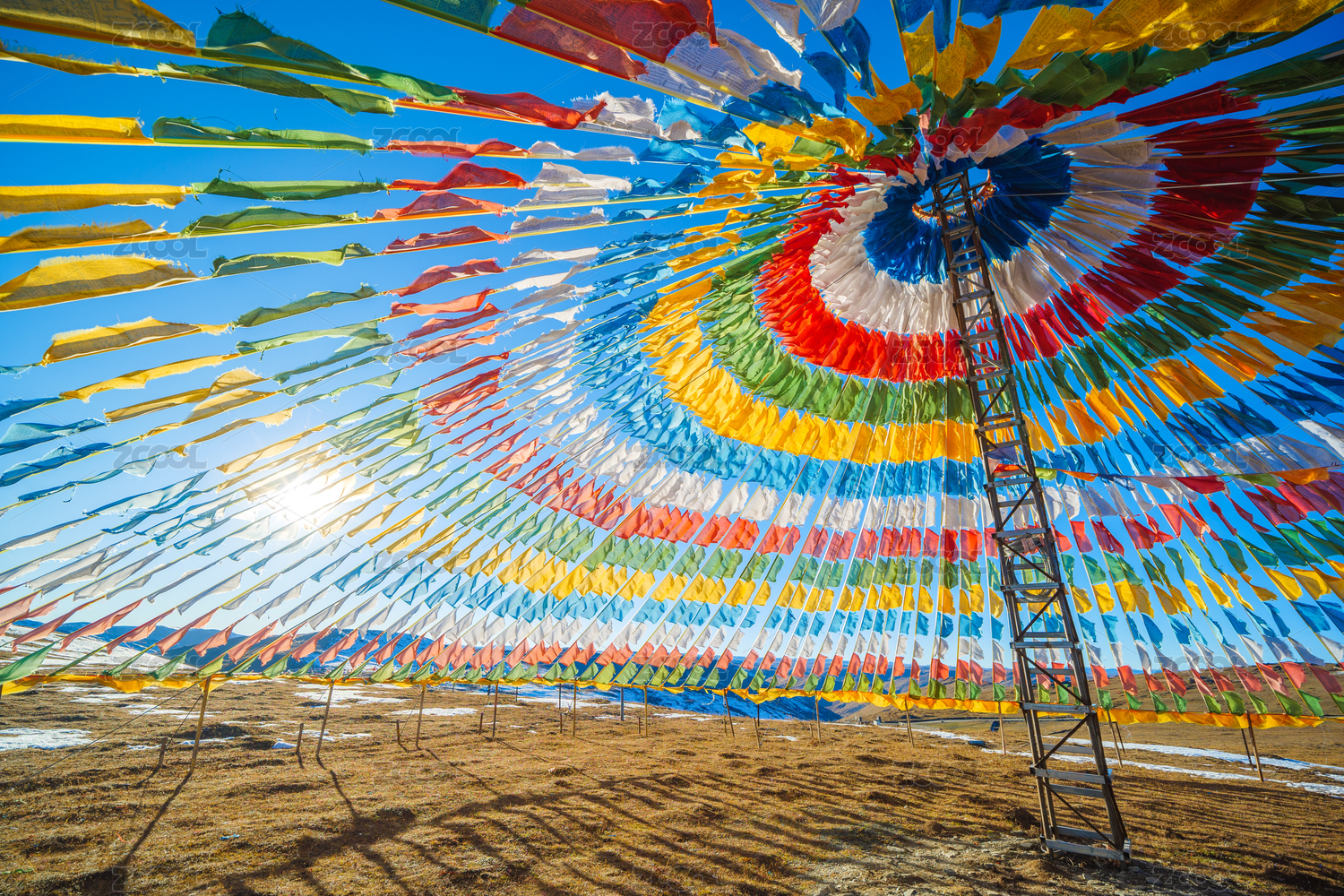 经幡,风马旗,五彩经幡,蓝天,高原,民族特色,彩色,祈福,文化,户外