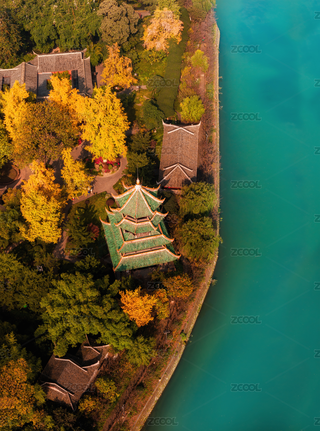 成都望江楼公园府南河航拍城市风光白昼俯拍