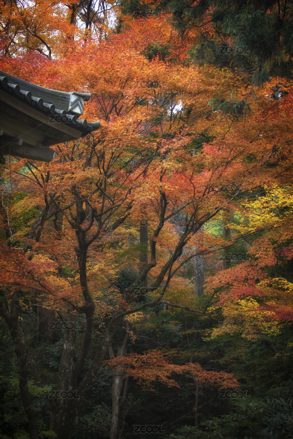 日本京都山科区毗沙门堂,秋季红叶坡道