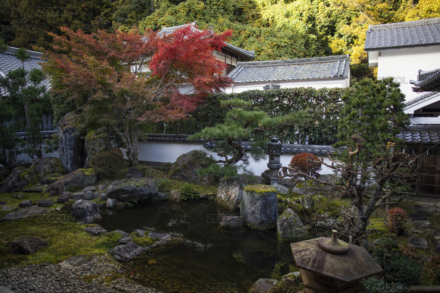 日本京都山科区毗沙门堂,日式建筑与秋季红叶