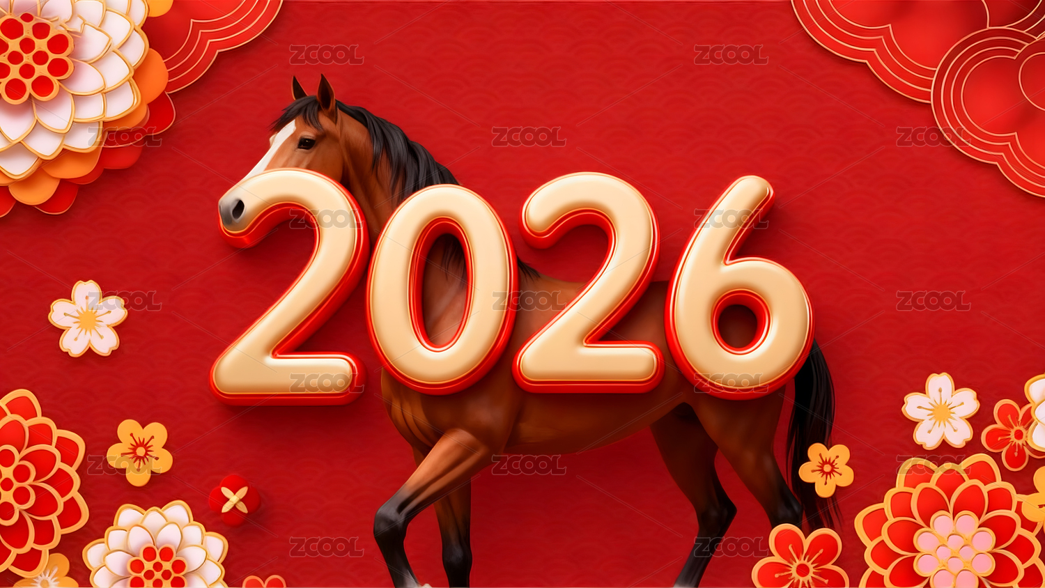 马年,春节,新年,插画,马,灯笼,祥云,2026,2026年,白马