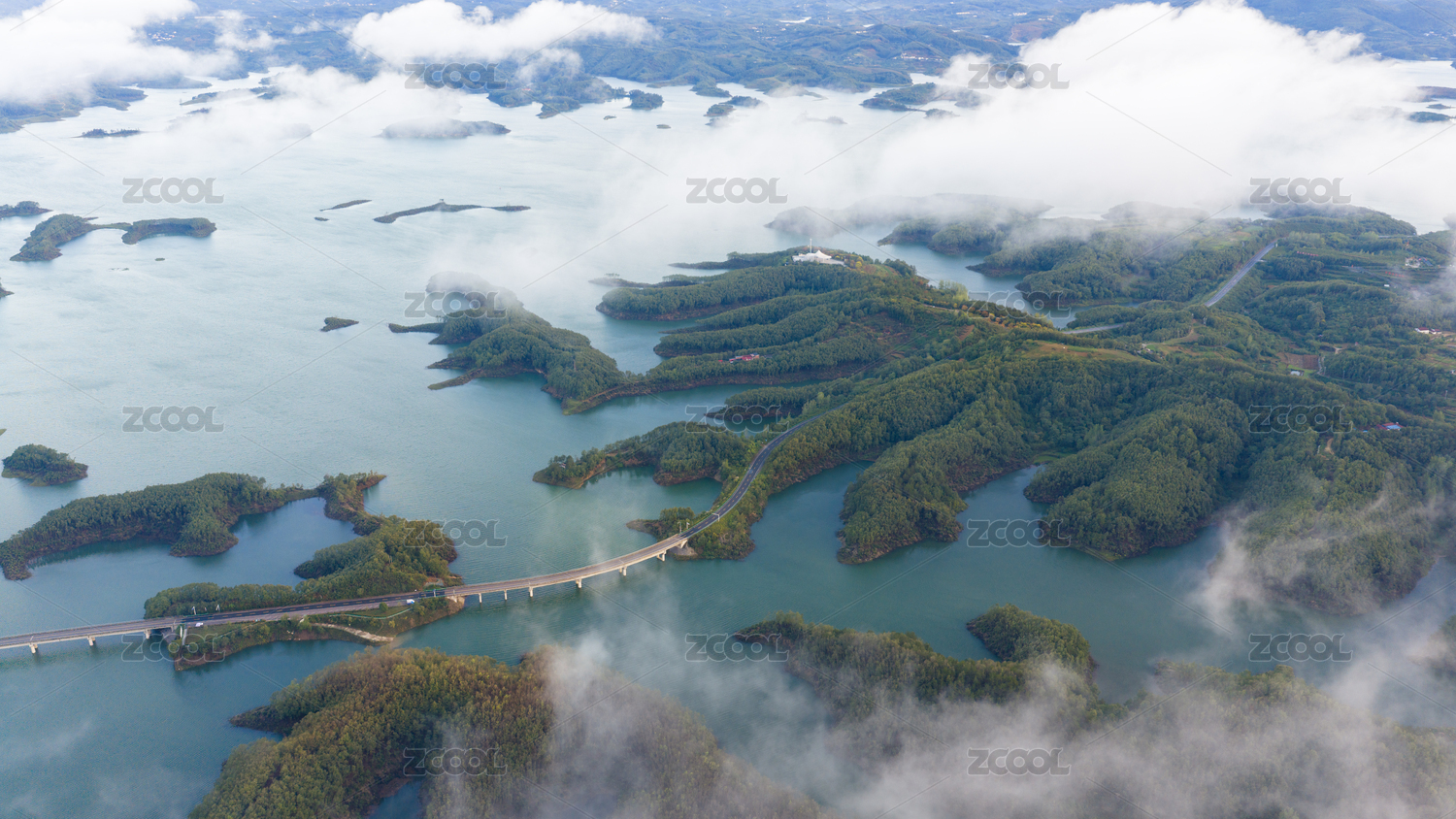 航拍亚洲天池湖北丹江口水库环湖公路美景