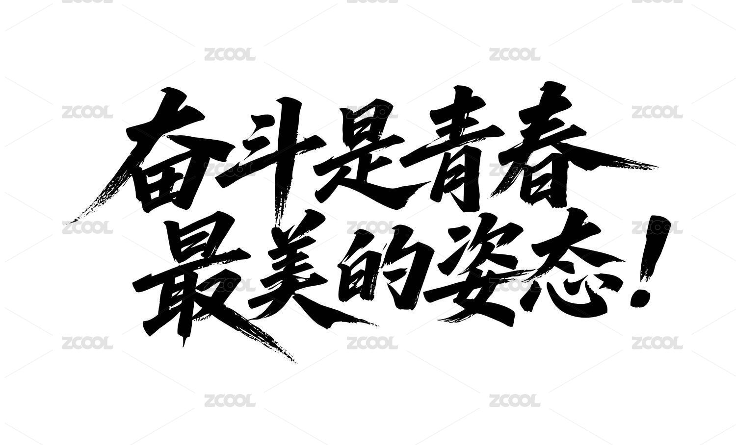 奋斗是青春最美的姿态矢量书法手写毛笔字